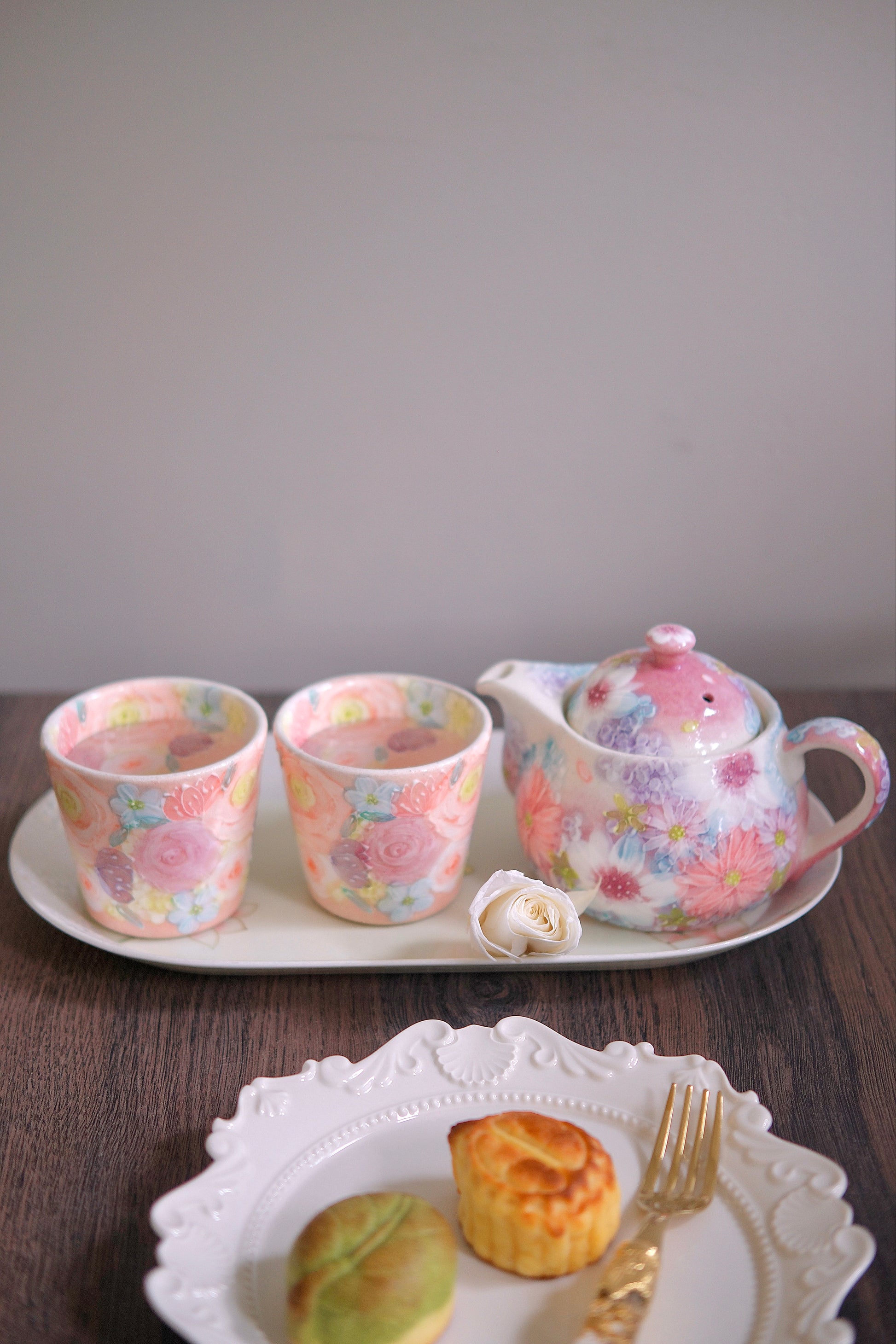Yuzuriha Flower Pot and Teacups (Gift Box)